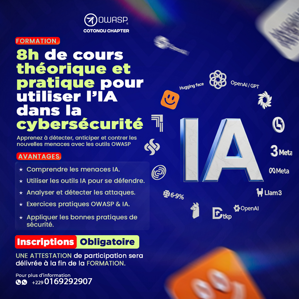 The OWASP-Cotonou branch will hold its next meeting on the theme “AI in the service of threat detection: myth or reality” on July 3, 2025 in Cotonou, at PIGIER Cotonou.